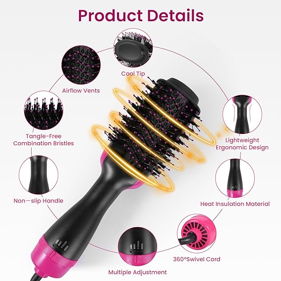 4-in-1 Hair Dryer Brush and Styler, Hot Air Blow Dryer, Volumizer with Ionic Technology