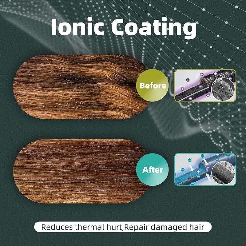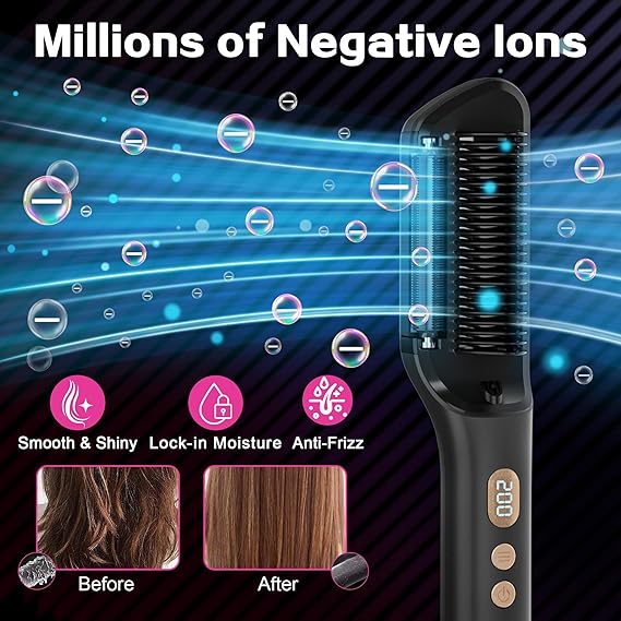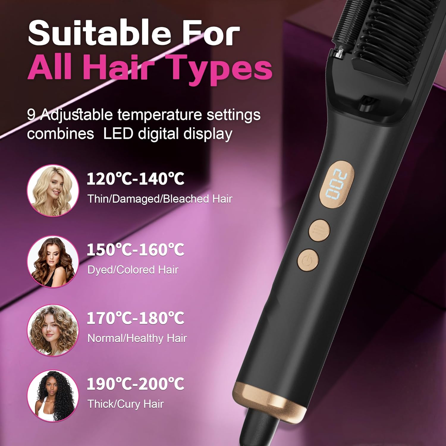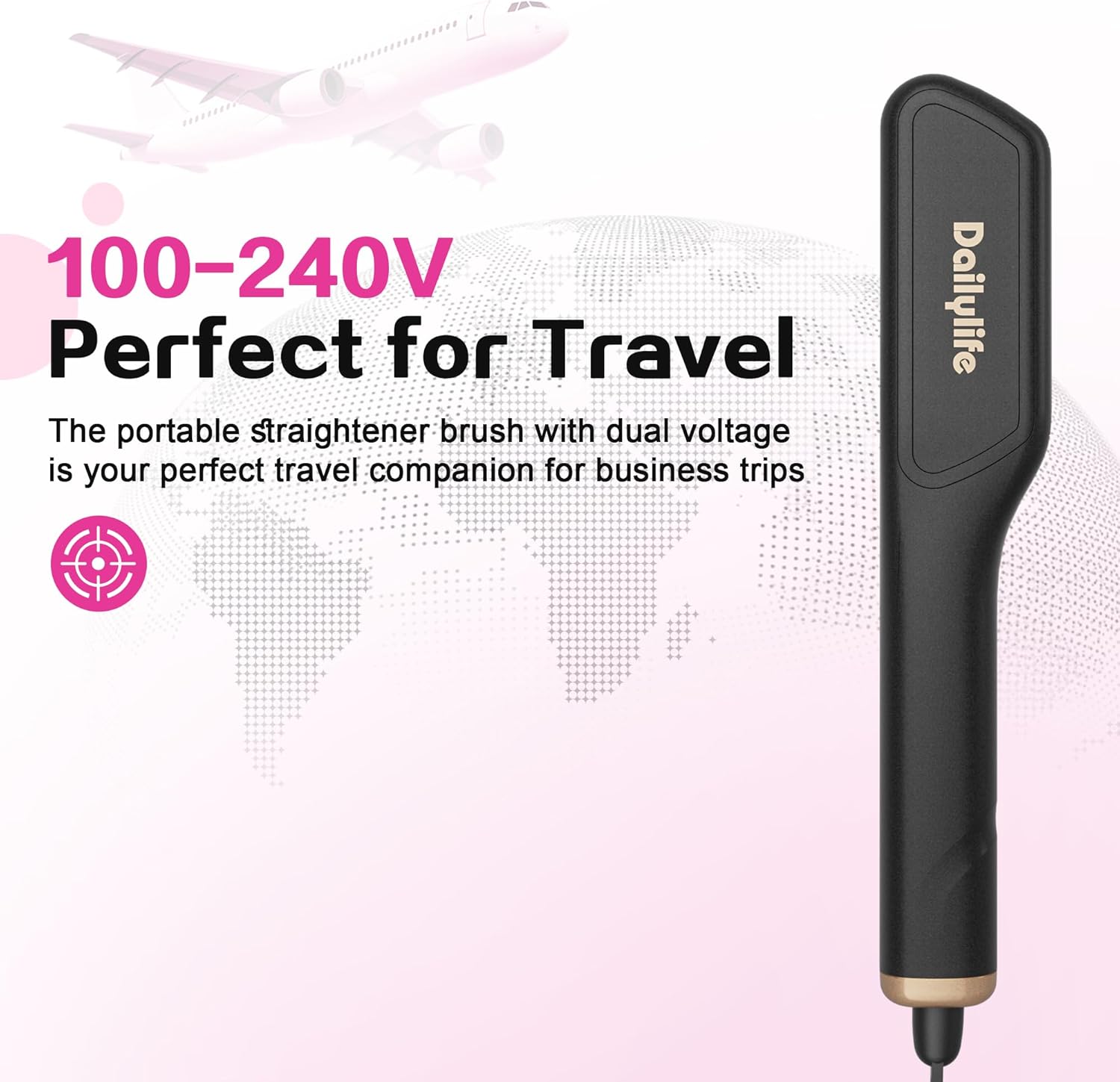 Pro Ionic Hair Straightener Brush for Women - 9 Temp Settings with LED Display, 20s Fast Heat (250°F-410°F), Dual Voltage & Travel Bag for Frizz-Free Salon Finish