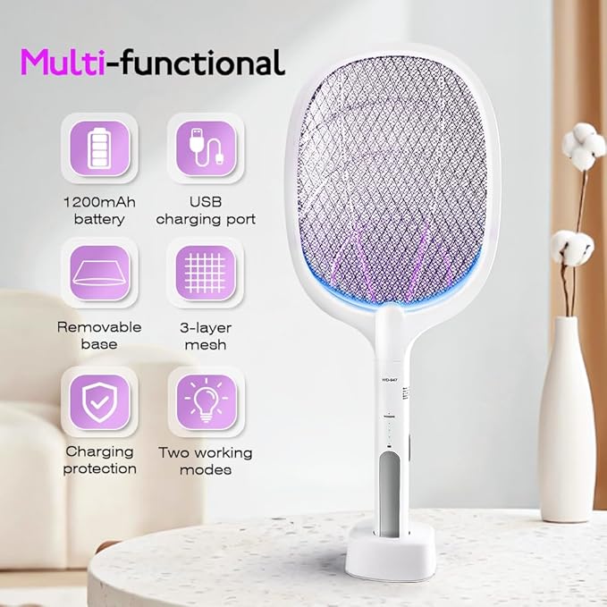 Rechargeable Mosquito Racket With Stand – Electric with USB Charging Indoor or out Door