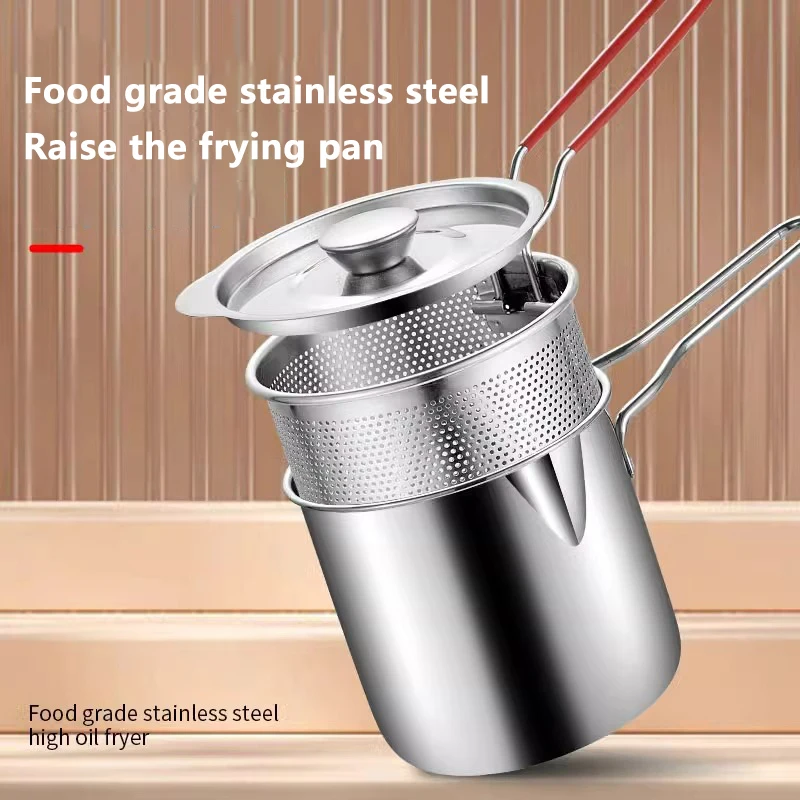 Kitchen Deep Frying Pot 304 Stainless Steel Kitchen Fryer With Strainer Tempura Fryer Pan Chicken Fried Chicken Cooking Tools