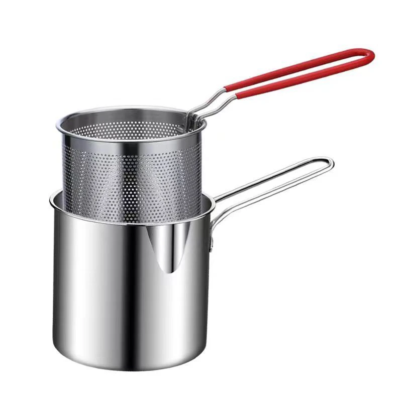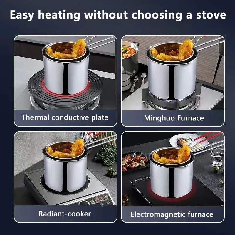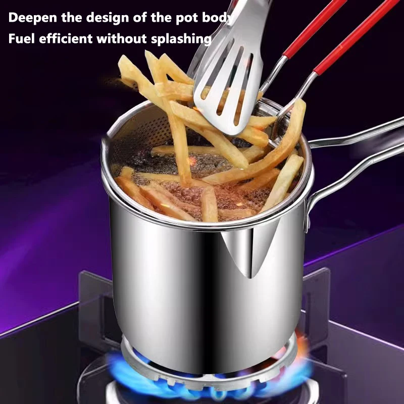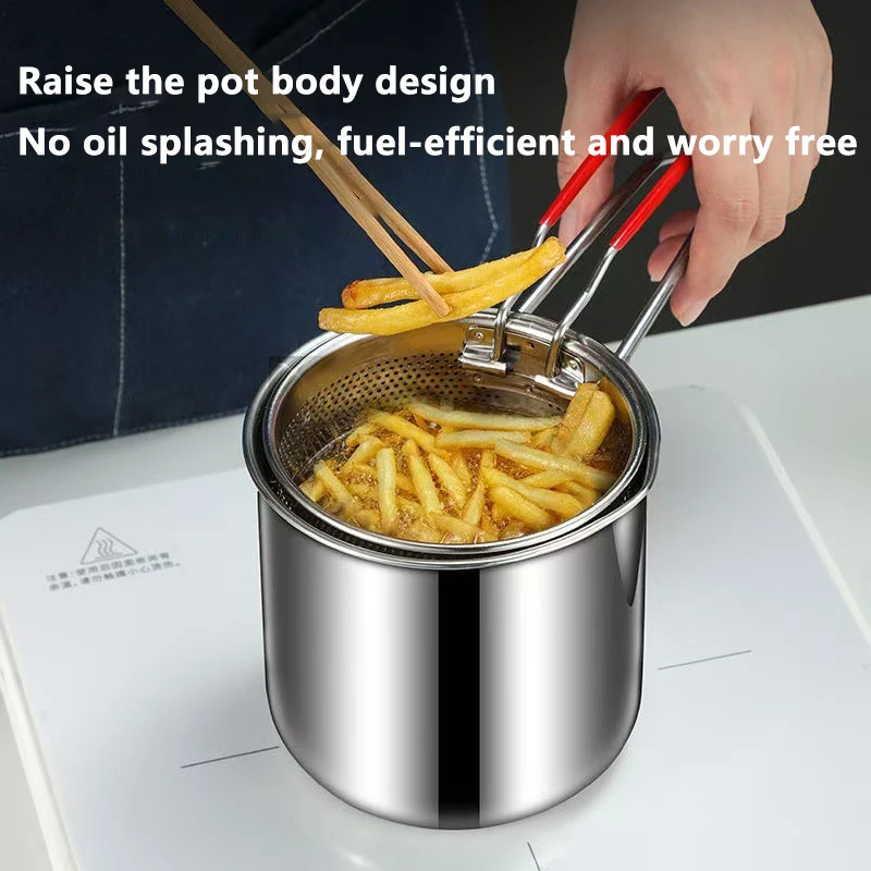 3. DEEP FRYER POT-- Adopting stainless steel materials, being sturdy, not easy to deform or break, this deep fry basket supports service life.