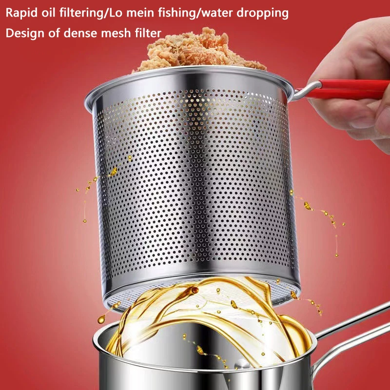 2. FRIED FOOD STRAINER-- The oil can drain quickly and cleanly, this frying kit is perfect for cafe, restaurant or your home use.
